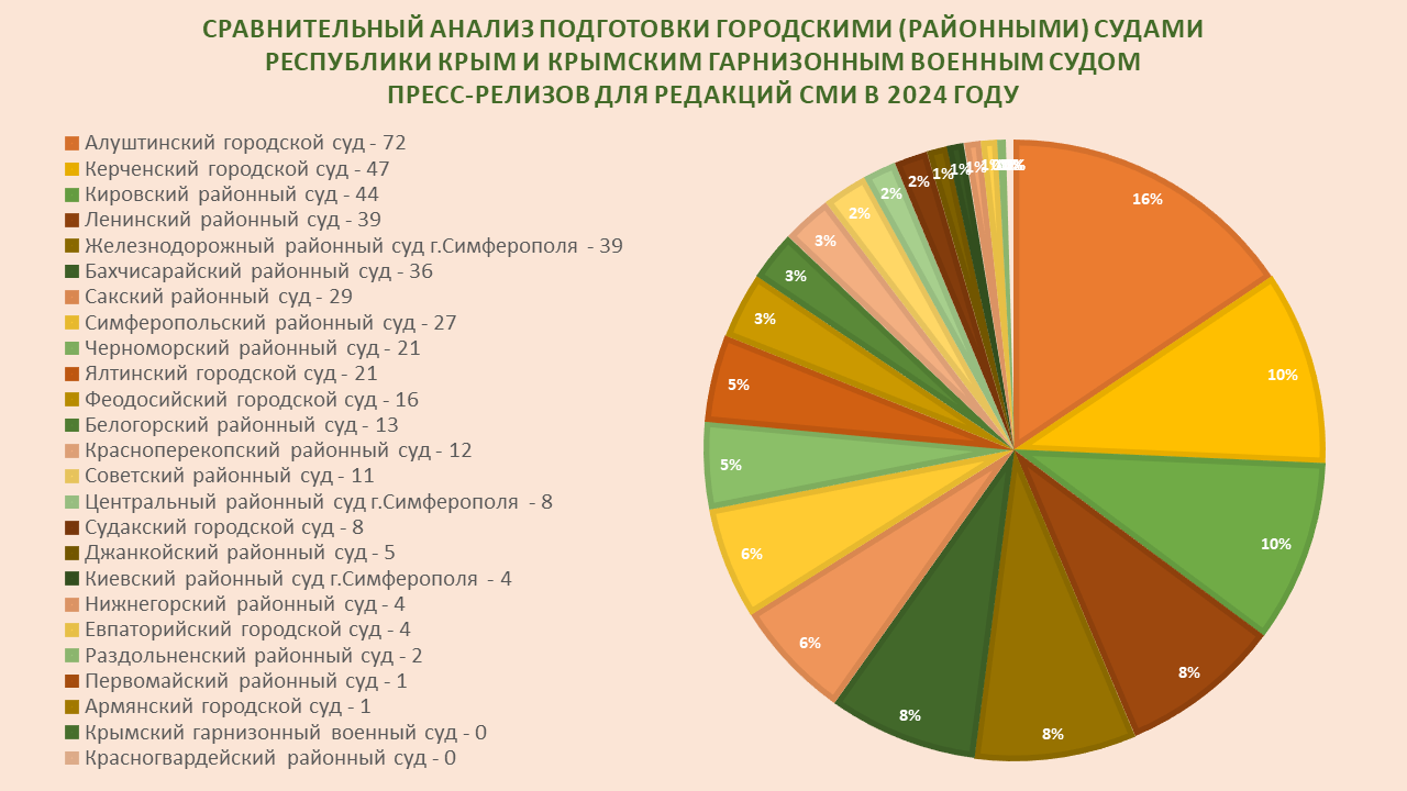 Сравнительный анализ подготовки городскими (районными) судами Республики Крым и Крымским гарнизонным военным судом пресс-релизов для редакций СМИ в 2024 году