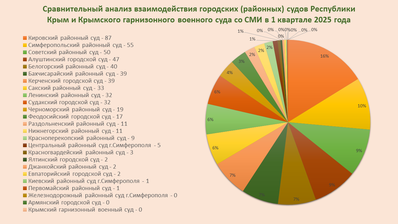 Сравнительный анализ взаимодействия городских (районных) судов Республики Крым и Крымского гарнизонного военного суда со СМИ в 1 квартале 2025 года
