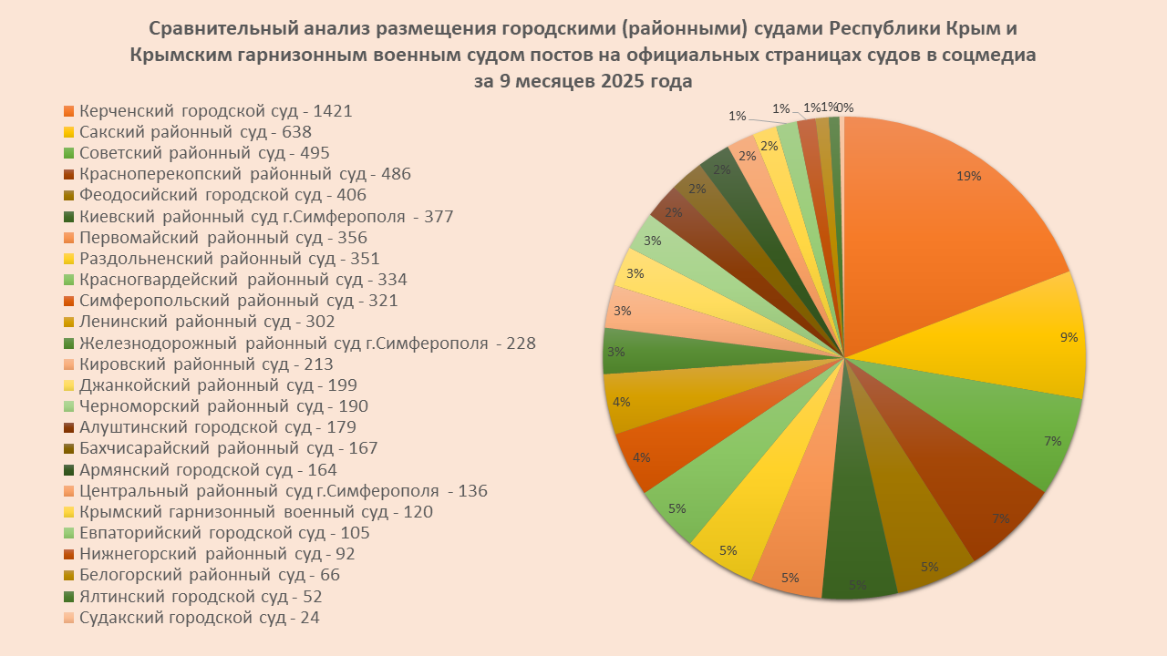 Сравнительный анализ размещения городскими (районными) судами Республики Крым и Крымским гарнизонным военным судом постов на официальных страницах судов в соцмедиа за 9 месяцев 2025 года