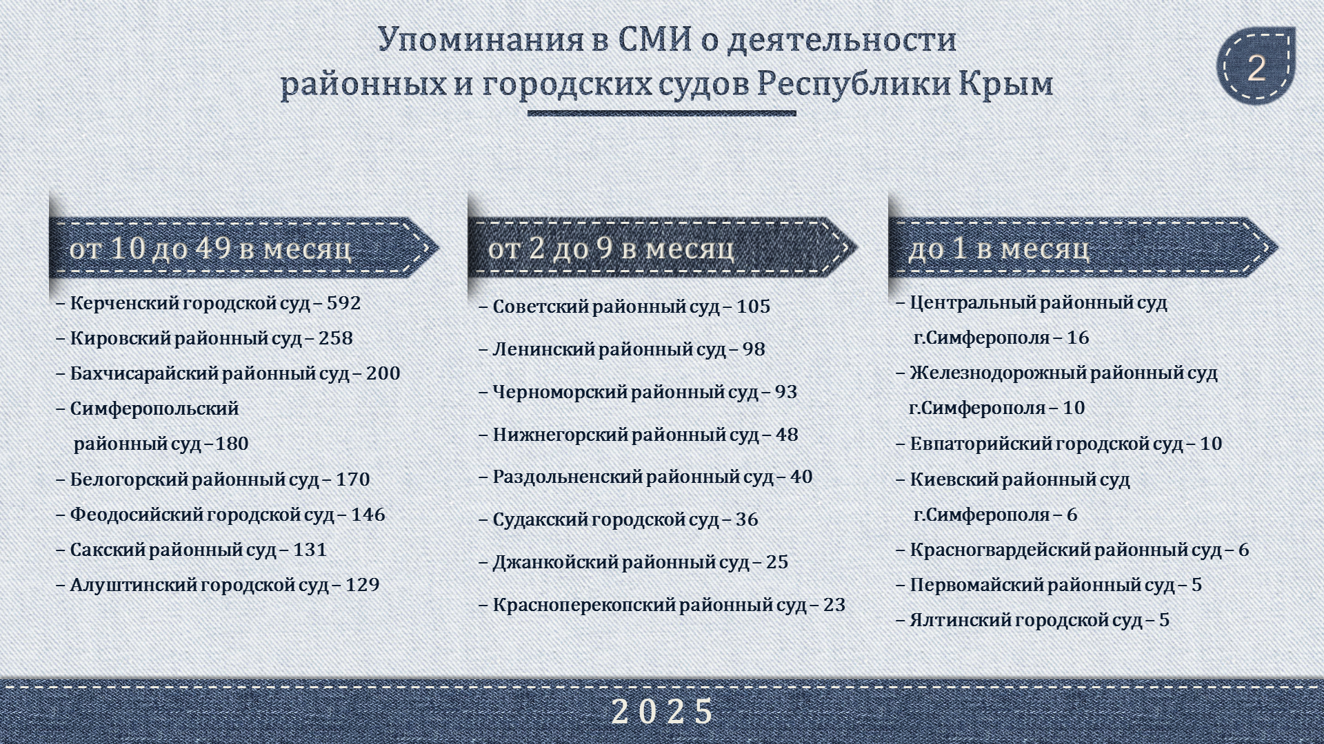 Сравнительный анализ работы, проведенной городскими (районными) судами Республики Крым со СМИ в 2025 году