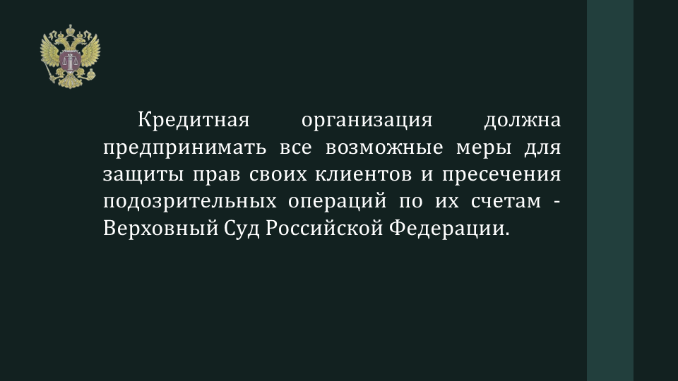 Верховный Суд Российской Федерации указал на обязанность банков пресекать сомнительные операции по счетам клиентов